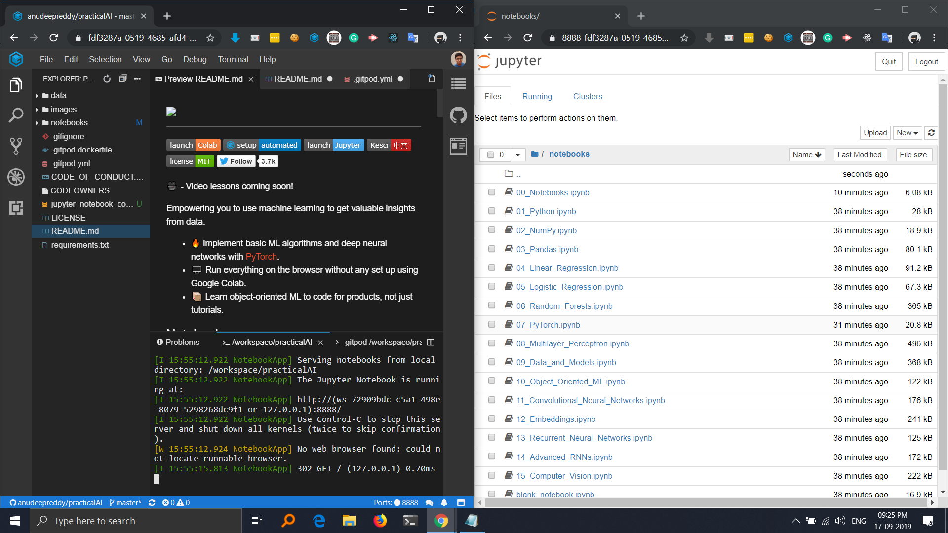 I would like to add two config files through this repo which can automate the task of setting up a workspace on Gitpod. Gitpod is an online IDE for GitHub. This PR might help the contributors as well as the learners. The workspace is equipped with anaconda so everything is installed by default and you can edit and runt the jupyter notebooks with the Gitpod IDE.