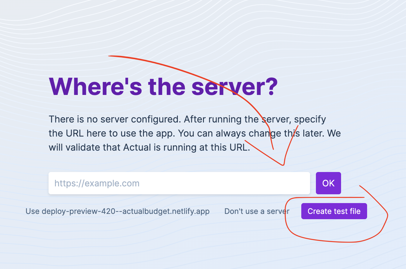 Adding a test-budget creation button on the very first screen to simplify things in the preview and dev environment.