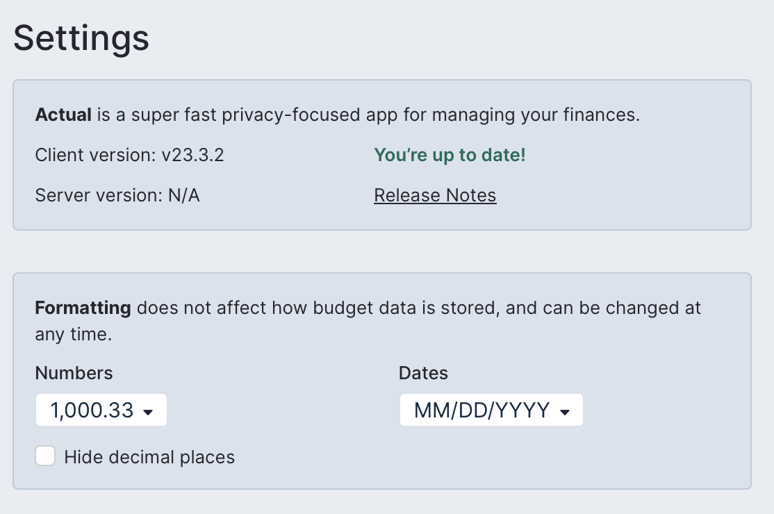 224cc77Update About to usea294b1fPort budget name to be a too,b019575Inline final usage of835fb15don’t like for budget name6f71b27Fix global prefsf30f480Update styling of About section to reflect outdated version indicator3019694Update index.js3e4c2bdHide budget name setting on desktop9aa4c1bAdd a settings button to the budget menu7153c83Update advanced section to use Setting styling📊 Changes