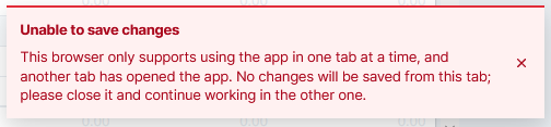 I immediately get the "Unable to save changes" error popup, even though no other tab is open