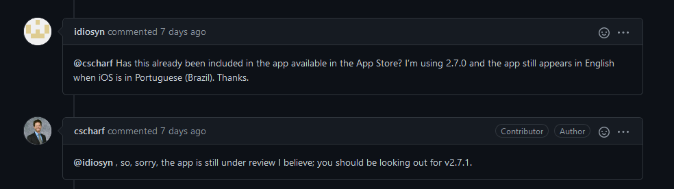pt-BRandpt-PT, and the articles/posts you linked clearly state that iOS through Xcode will only supportptandpt-PT, so I will work on mapping thept-BRand duplicating that topteither in crowdin or part of a DevOps build task.@mvlaza commented on GitHub (Dec 15, 2020):