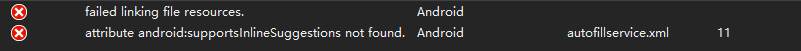 attribute android:supportsInline-Suggestions not found.