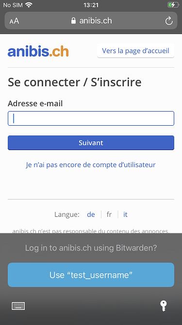 Tapping on the email address field in both websites does not prompt Bitwarden to offer to autofill them when browsing through Firefox and Chrome, but via Safari it does offer to autofill them.