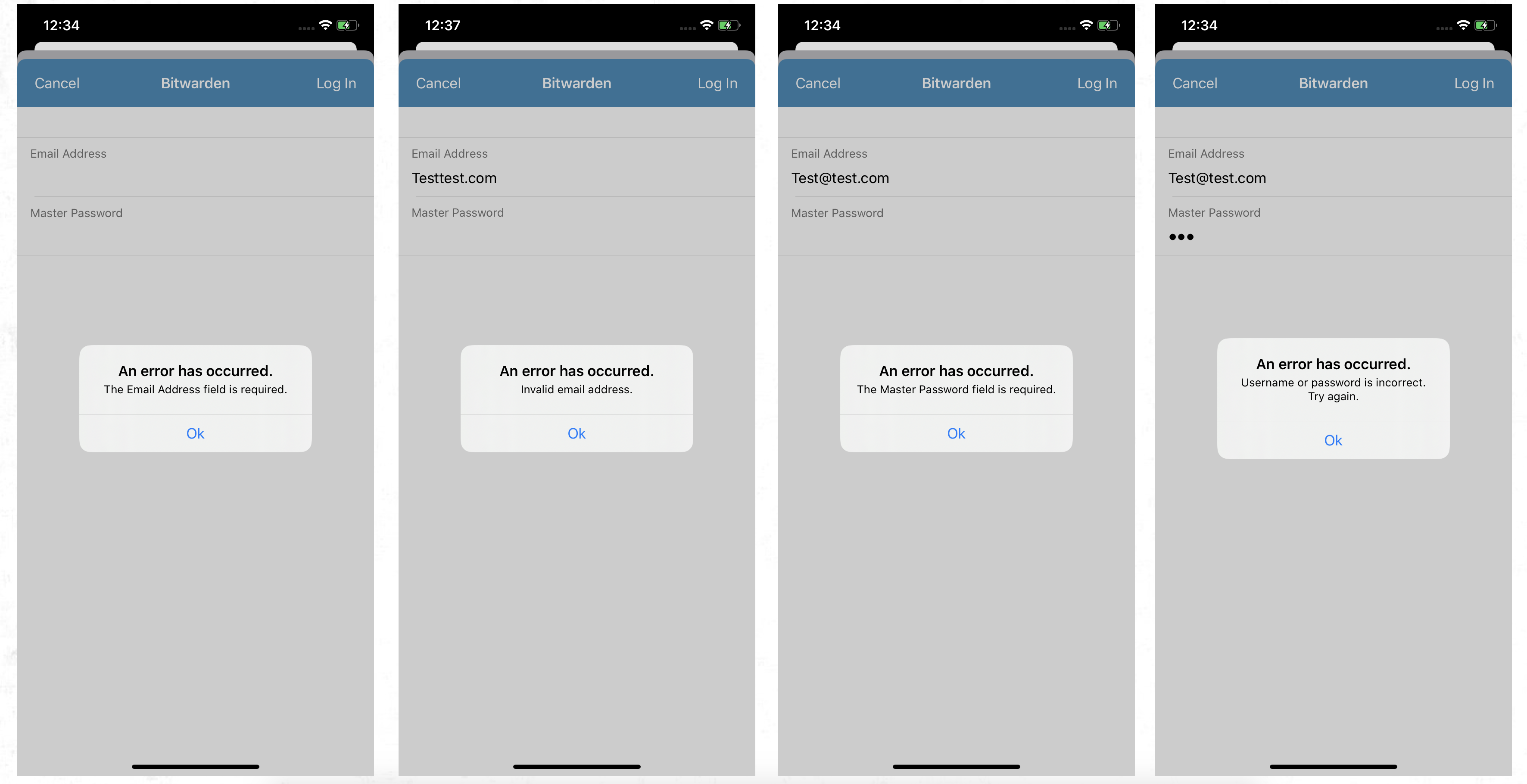 Login Credentials Errors