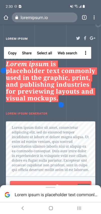 Sharing text from selection:
