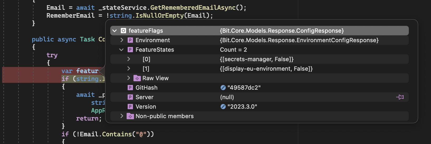 ff04ded[PM-1351] Add service to retrieve feature flags from api.b4a8fda[PM-1351] Fix formatingfe3c04b[PM-1351] Add config cache for 10 mins during session or app restart.9eafa50code formatf36a159Merge branch 'master' into feature/pm-1351-get-feature-flagsd4395fbUpdate ConfigService.cs0ba5ff4Merge branch 'master' into feature/pm-1351-get-feature-flags736ceb5Merge branch 'master' into feature/pm-1351-get-feature-flags5140f56[PM-1351] Add configs to state, only fetch state if no state or expired validation.ab8b856PR fixes📊 Changes