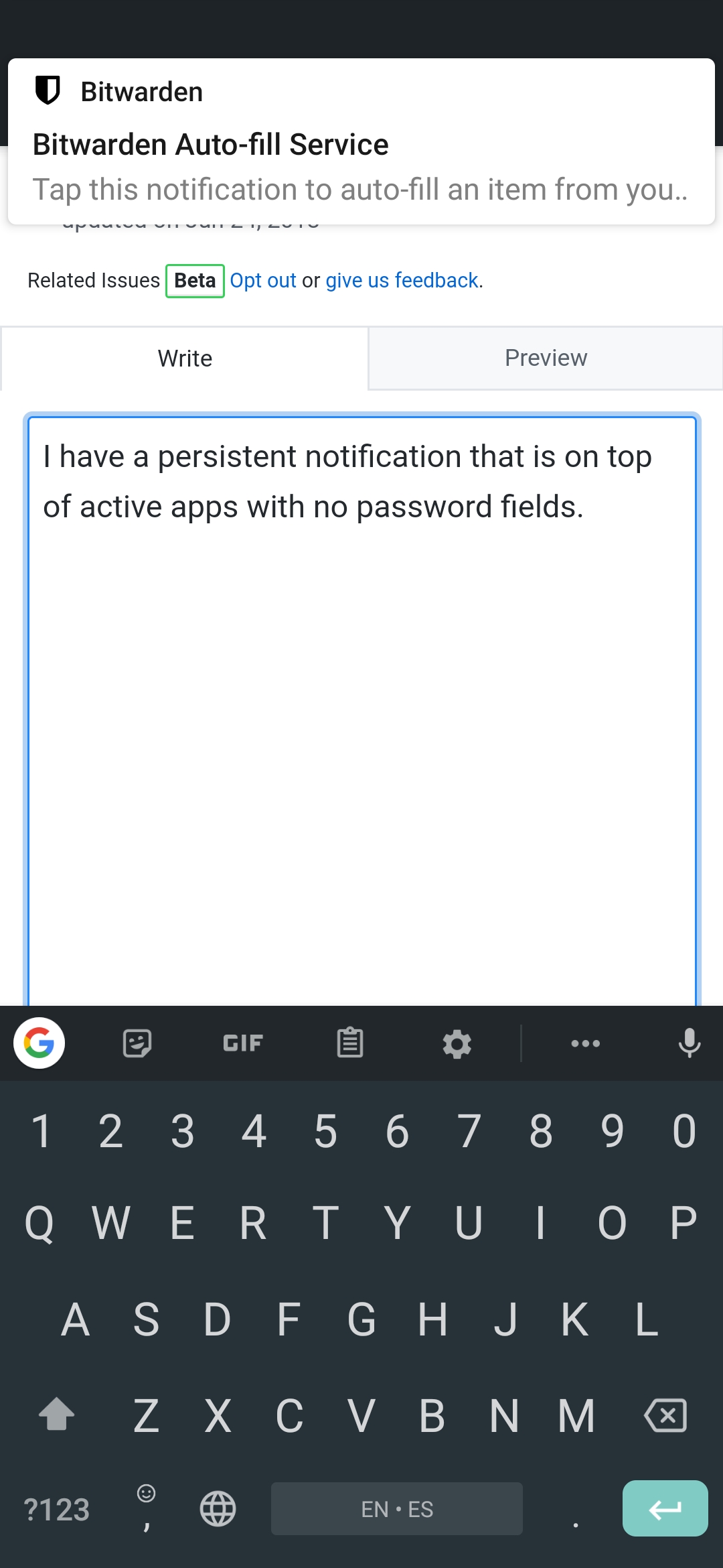 I have a persistent notification that is on top of active apps with no password fields.