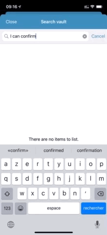 There is an issue with searching for an entry with iOS 13 and Dark Mode enabled via the iOS System Settings.