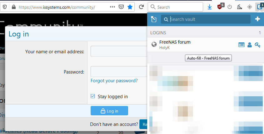 The problem i have is that it does NOT work on Android phone at all. It just says "There are no items in your vault for ixsystems.com" even the URL in browser is one of the stored ones.