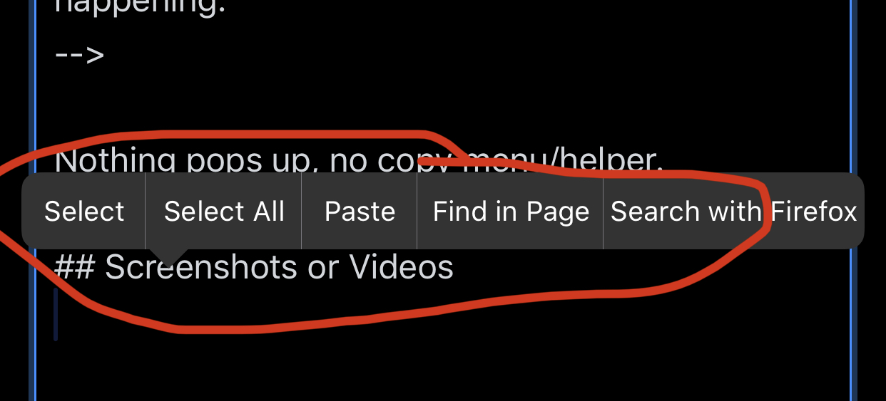 No "cut-copy-paste" popup in any fields while adding a new item from apps (my case genuss+ app)