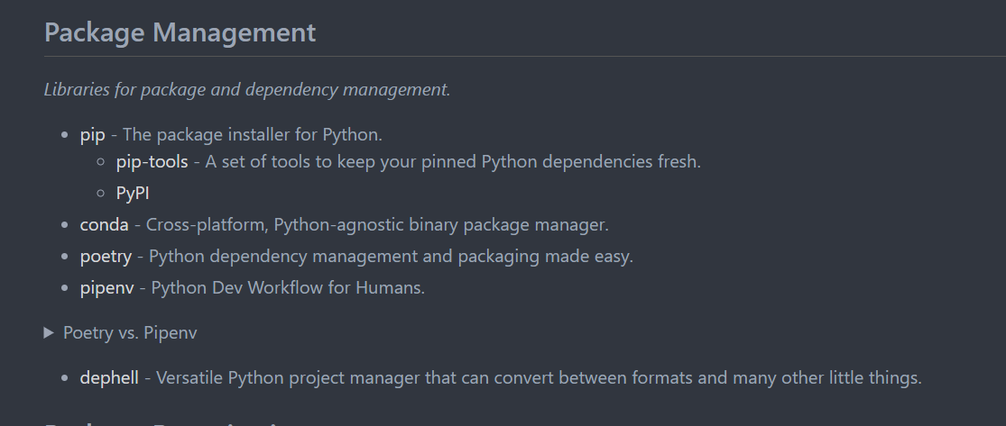 [PR #1691] Added poetry, pipenv, and dephell under dependency management #1470