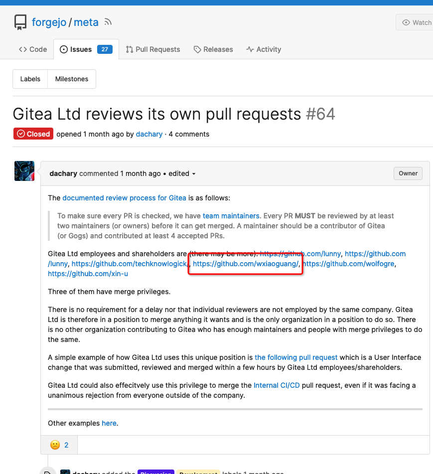 I thought the maintainers/admins of this repo here at github do work for "Gitea Limited".