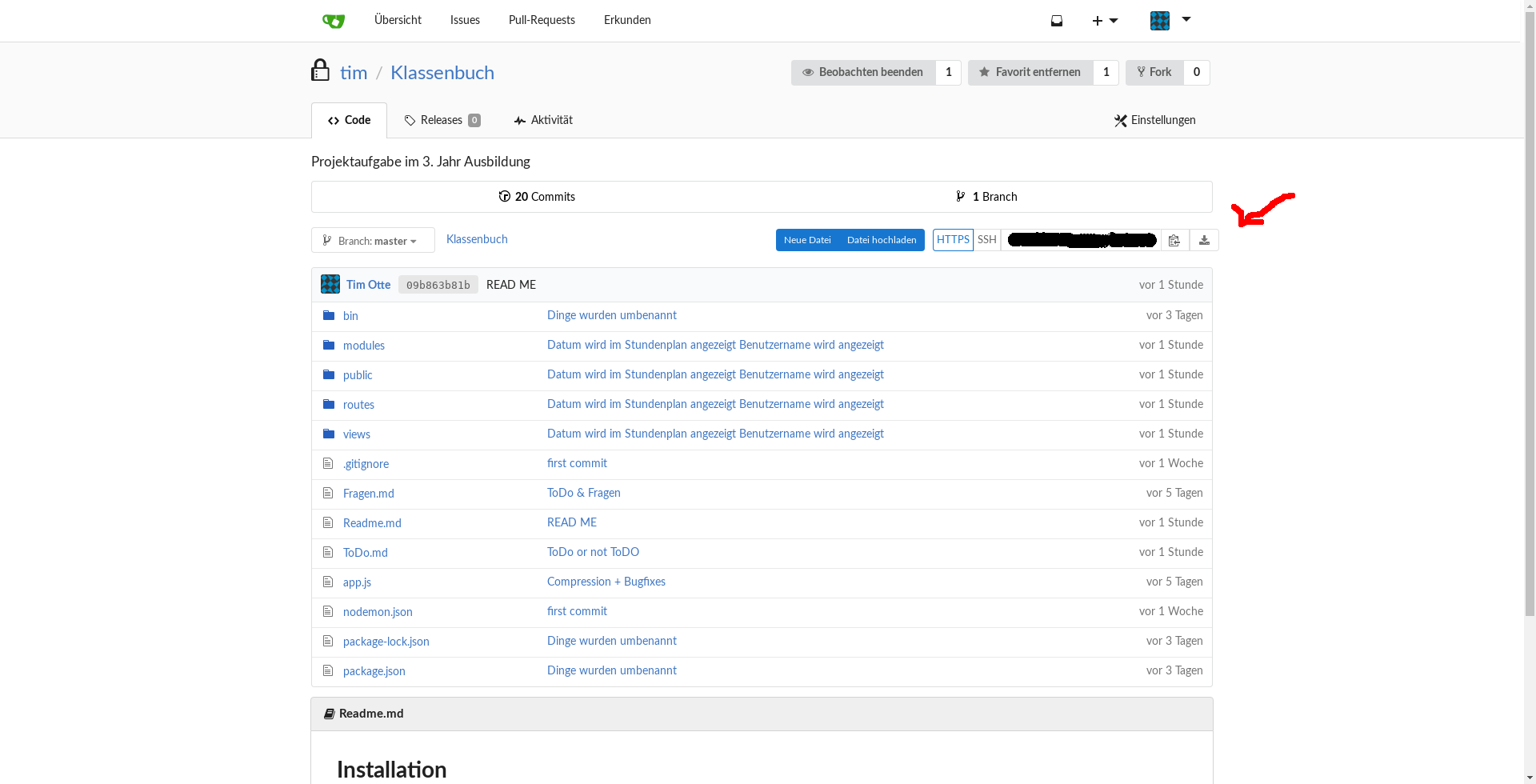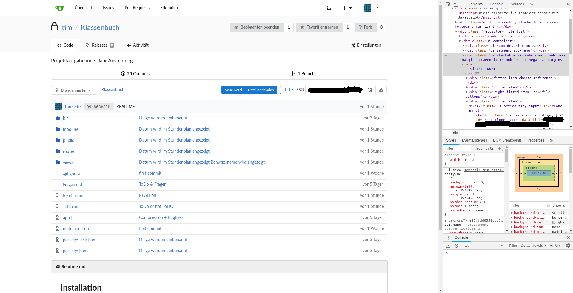 In the repository view there is a textbox with the current repository url. On the right side of this textbox there are two buttons: Copy to clipboard and Download. The download button is further to the right side than the box above and below. Adding a width of 100% to its ? parent container (like in the screenshot) should fix it.