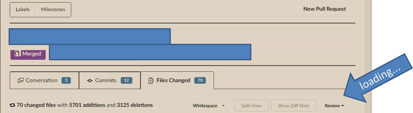 I often receive pull requests consist of 1000 lines changed scattered in 70 files. The diff takes a while to load. The approval+reject+comment panel is inaccessible before the diff is 100% loaded in the browser. I normally do code review with custom scripts outside Gitea.