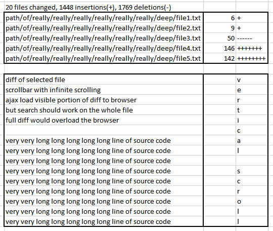 I think @zeripath probably want to increase the capacity of the diff page. Consider something like midnight commander 2-panel interface. List of files on the left, and a diff of the selected file on the right. Consider supporting infinite scrolling on the diff panel. Humans TLDR and a way to locate something is needed.