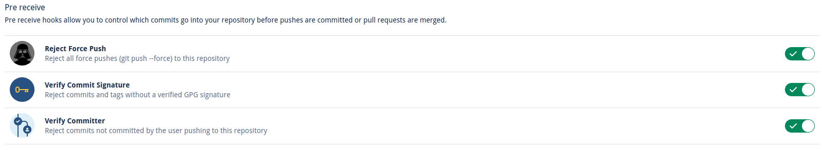 Possible to set default hooks on organisation wild repos, without writing shell code.