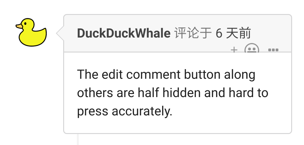 The edit comment button in issue comments along two others are half hidden and hard to press accurately when used on mobile, requiring multiple clicks and can be quite annoying.
