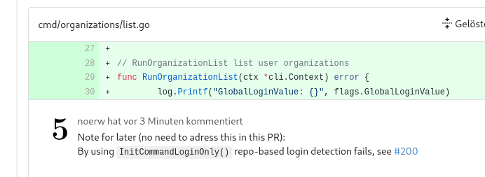 example from above is https://gitea.com/gitea/tea/pulls/264/files#issuecomment-121110