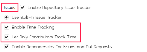 As there is a wiki section, issues, etc. I would put the time tracking and dependencies options in a separate section.