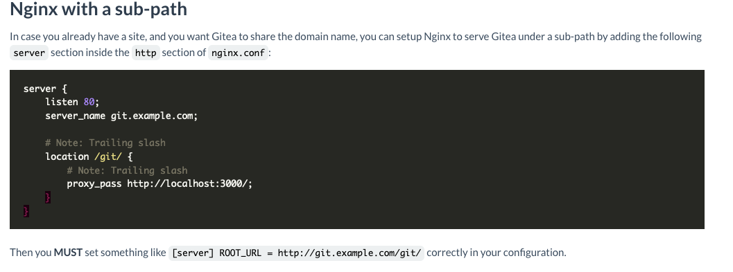 404 page not foundwhen I tried to access it via the sub-path of Nginx. I already set everything back to normal and even ran gitea with a new config.If I go to Gitea's webpage directly, I get the correct HTML, just the assets won't load since it tries to get them from the broken