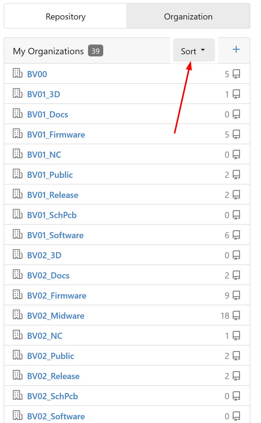 I have many Repositories and Organizations , I want a sort button just like l the one on the Explore page.