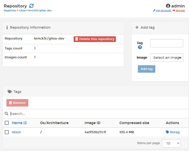 /v2/_catalogand got some problems which prevent a PR but in general it works.Github/Gitlab may got the same problems which may be the reason they don't provide this endpoint.