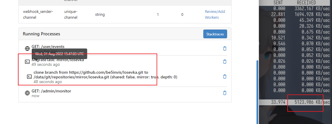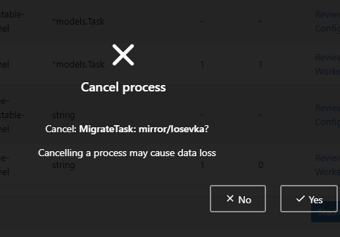 When I delete a repository that is undergoing migration activity in the repository management in the admin panel, its migration task is not actively terminated with the deletion of the repository