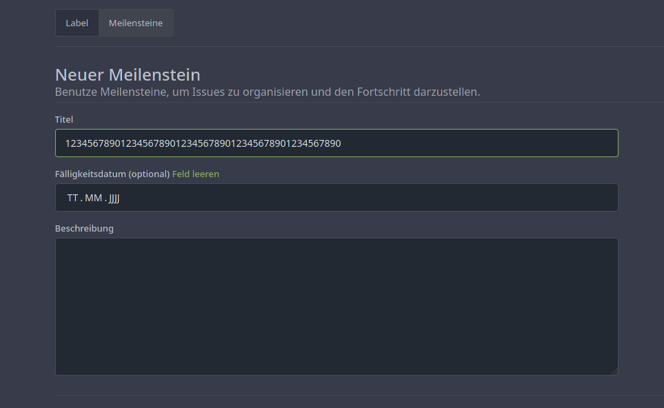 Input field for new milestone is limited to 50 chars #9668