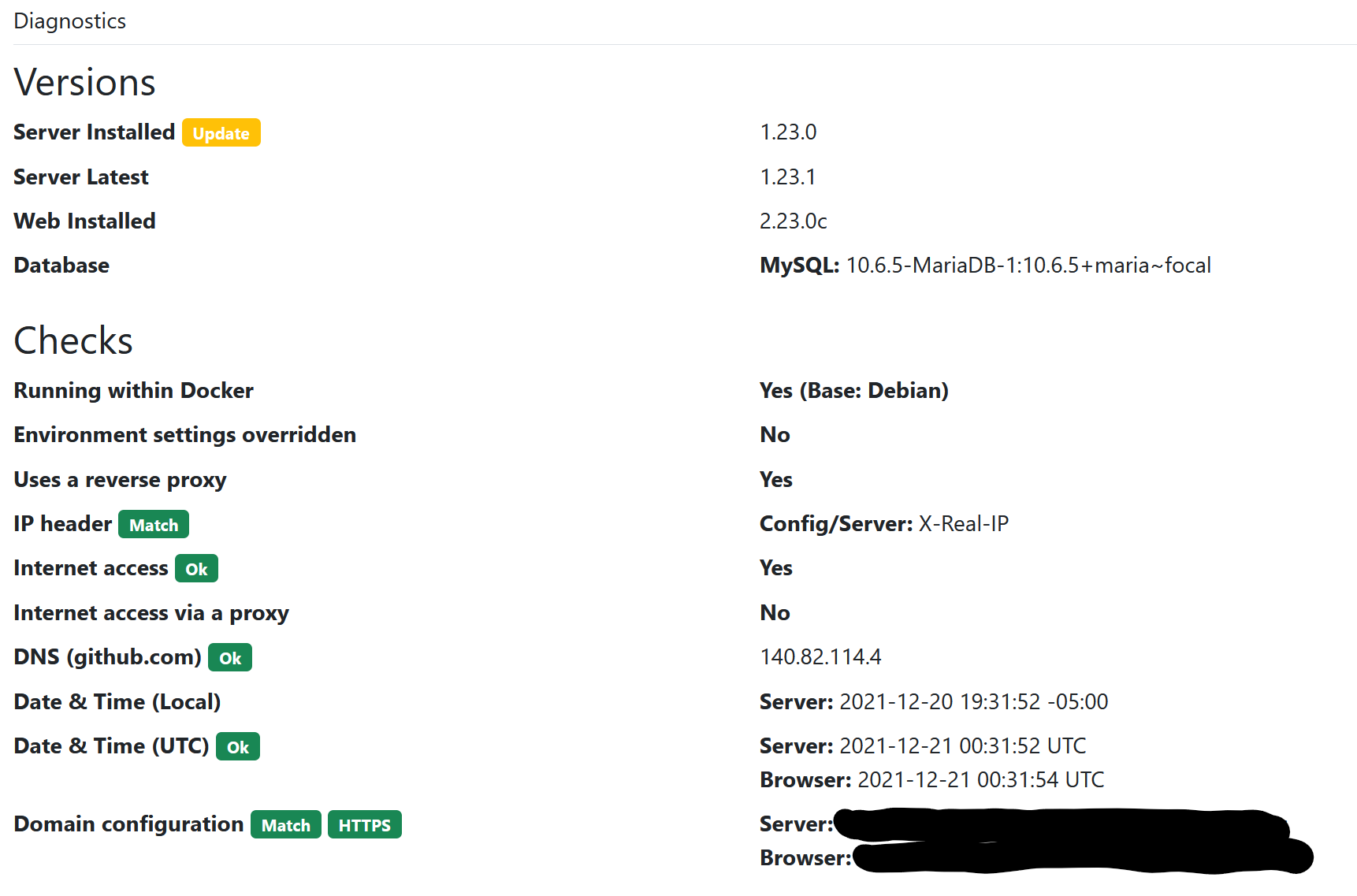 MySQL/MariaDB or PostgreSQL version: MariaDB 10.6.5