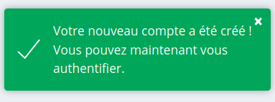 When a new user registered, the green messages at the top right says in French that the user could now connect to the application whereas it is required to activate the account before.