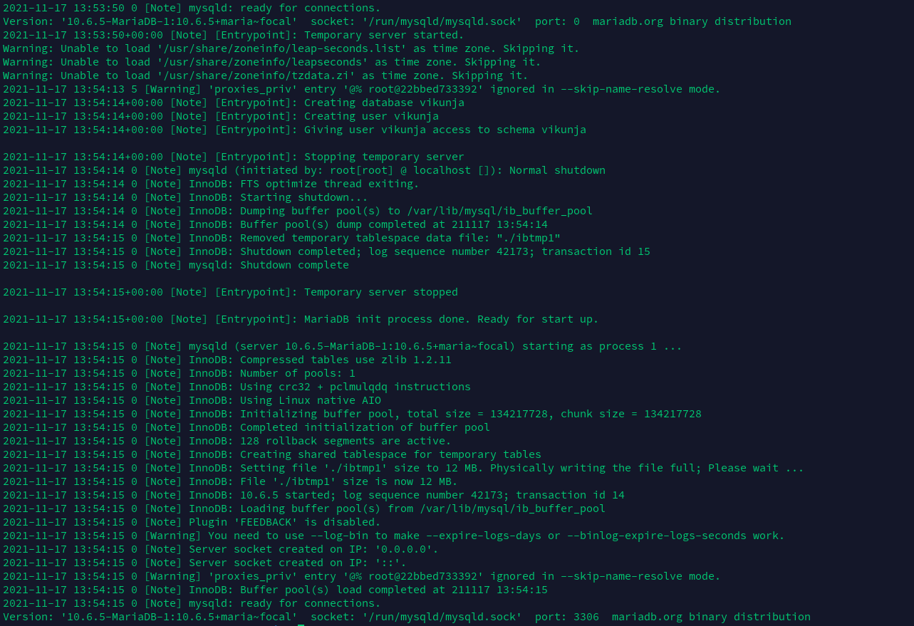 Is there any useful logging output from the mariadb container?