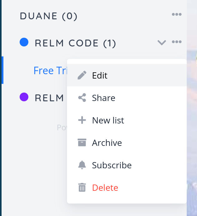 On the left-hand panel, I can click the "..." button to see a menu of actions on a namespace. I choose "Edit" and change the name of the namespace. When I return, the lists under that namespace are gone and it says